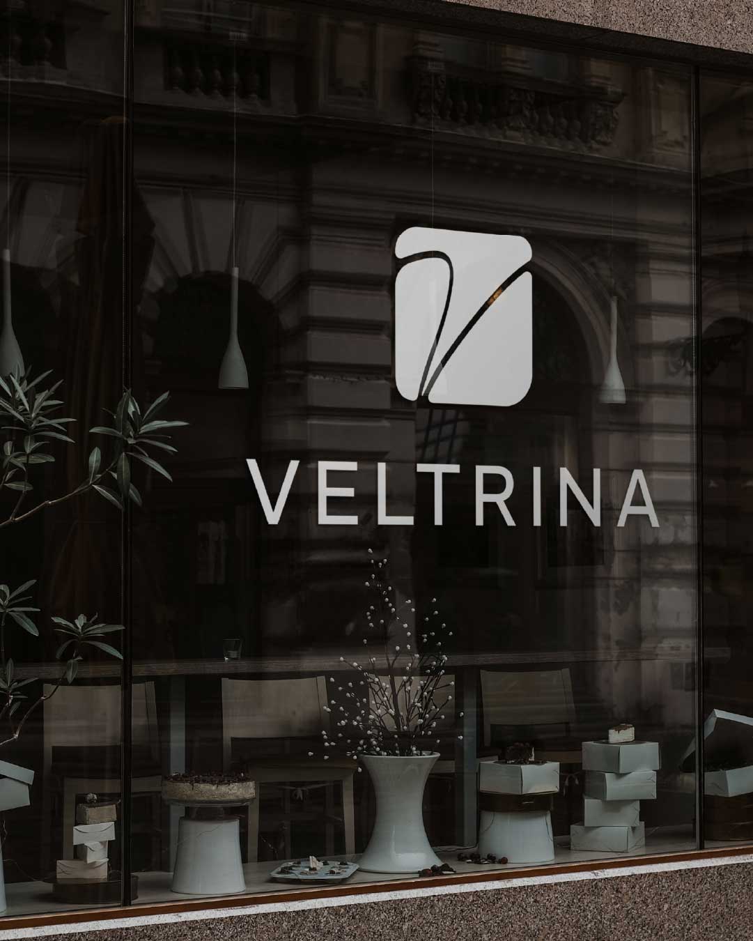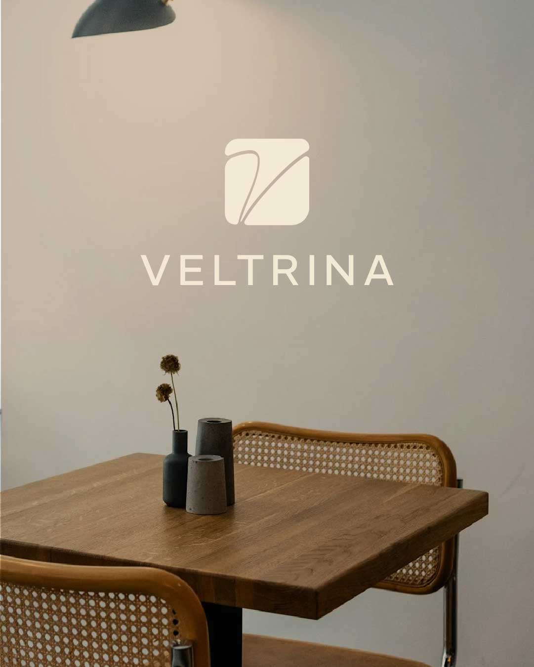 U srcu vizualnog identiteta Veltrine nalazi se monogram, oblikovan oko stiliziranog slova V, koje više nije samo slovo, već potez kista.
